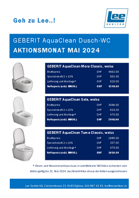 Spezialrabatt auf Geberit Dusch-WCs nur bei der Lee Sanitär AG!